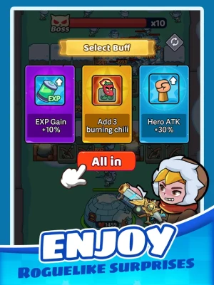 Experience the thrill of roguelike gameplay: slay unpredictable enemies and epic bosses by collecting random buffs.