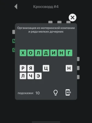 - Простая система подсказок. Открывайте неизвестные буквы за подсказки