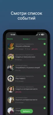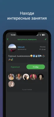 This application allows you to create an event and find people for a wide range of activities like board games, sport, travel, hiking and so on.