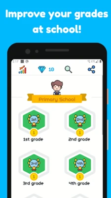 The app helps children get into the habit of learning and practicing math every day. Be active and exercise math problems to get interesting rewards, earn points and unlock new levels and ranks! The preparation for the test and exam at school will be much faster and more effective!