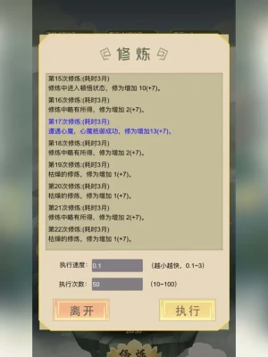 玩家QQ交流群:494937266 这是一款纯单机文字类游戏(删除游戏后游戏数据会丢失,请不要轻易尝试删除游戏),在游戏中你需要合理分配寿元。游戏功能:历练:可以获得属性、异兽、灵石。任务:可以获得属性、灵石(大量)。修炼:提升修仙境界。异兽:75个精美异兽供你收集、培养。