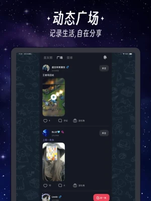 【星空】可以通过星空邂逅、孔明灯、语音连线等方式,快速找到一个真实用户,开启一段畅快的聊天对话;