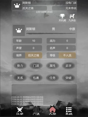 开发者比较喜欢太阁立志传,又喜欢武侠,所以萌生了做一个武侠版的太阁立志传,现在是早期版本,后面会持续更新,如优化AI,添加随机事件,结婚生子等,请耐心等待哦!