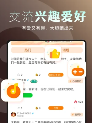采用全球一流RTE实时语音技术,私密聊天、直播,多场景切换,可做被人追捧的大明星,也可邀请三五好友私圈密聊,各得其所,时光如流水,快乐不间断。