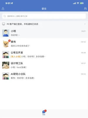 1.广东睿江云计算股份有限公司研发的即时通讯APP,为互联网公司企业定制的即时通讯APP2.专为公司办公交流设计,提高公司企业办公效率3.该应用为通用版,定制化设计会在该通用版上添加和修改功能