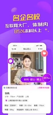 【知心恋人- 同城高学历优质青年征婚交友平台】 知心恋人,以严肃恋爱交友为主旨 是一个专门为20-35周岁优质单身青年服务的同城相亲恋爱交友平台。 这个年龄段男生女生都到了适婚年龄,而恋爱结婚关系到我们每一个人后半生的幸福。 我们希望平台每一个人都是诚心并严肃对待这件事情。 所以 除了基本的身份证实名认证,我们还会看中学历和工作认证。 并更优先推荐完成学历认证和工作认证的人。 我们希望男士是有稳定的工作或收入(正在上学除外), 至少你要有能力为你以后的家和家人支撑起一个遮风挡雨的能力。 我们希望女士,不一定要像男士一样赚钱养家,但至少你有一颗诚心, 在幸福的路上能与你的另外一半互相支持。 无论男女,希望你们都是有真心找个与自己余生相伴的人。