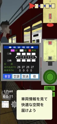 ここは縦山急行線。地域を支える4両編成の私鉄電車が毎日走っています。このゲームでは、車掌さんになってドアの開け閉めなどをし、安全が確認出来たら電車を発車させます。安全に運行し、最終駅により定時に到着させよう!