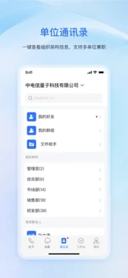 量子密信是由中电信量子推出的企业级移动通讯和协同办公应用,产品支持即时通讯、单位通讯录、会议管理、公告资讯等功能,可实现企业内部高效沟通、便捷管理,同时企业可结合全局水印、敏感词设置等机制,提高重要信息沟通的安全性。