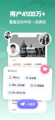 大厂青年、名校毕业生、斜杠青年、医生教师公务员… 推荐符合你要求的异性,照片+文字+语音,个人资料丰富立体。