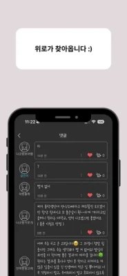 - 고민을 글로 쓰고 익명 친구들의 댓글로 위로받을 수 있어요.