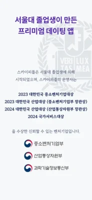 처음에는 솔로인 서울대생들이 좋은 인연을 찾을 수 있도록, 진실한 사람들끼리 모일 수 있는 공간을 만들자는 뜻으로 서울대학교 커뮤니티에서 시작했습니다. 그리고 현재는 20대와 30대, 40대 모두를 위한 "스카이피플" 서비스를 운영하고 있습니다.