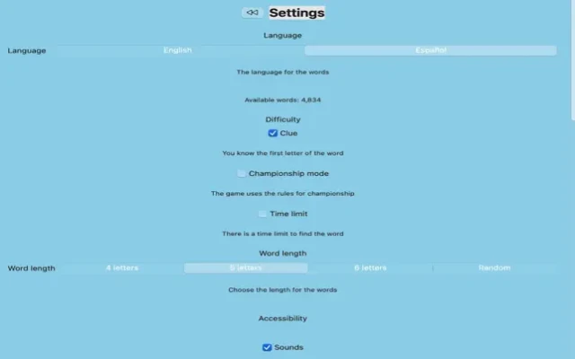Play as much as you like in English and Spanish and learn the meanings of the secret words.