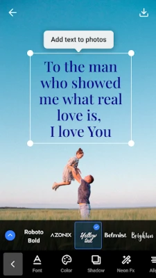 This app is more than just a photo editor text tool. It’s your go-to for turning memories into shareable text pictures. From text on pictures to text photo creations, make every moment special. With Text On Photo, your text art will shine. It's the easiest way to add text on photos for free and create text picture magic.
