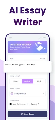 Essayness: Essay Writer App can help you transform any idea or topic into compelling, customized, and unique essays. As a student, you can use this essay writing app to streamline ideas, improve essay writing skills, and overcome academic challenges. Now is your turn to Download and install the Essayness AI essay writer and generate smarter, faster, and better essays.