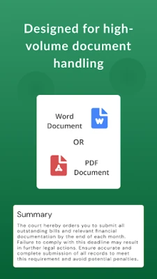 Quickly upload and analyze legal documents in various formats (PDF, Word, or scanned files). Extract key information and organize it into relevant sections for easy understanding.