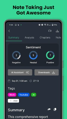Concise, well written summaries of your meetings, identify who’s speaking and generate actionable insights and takeaways automatically and share them with your colleagues.