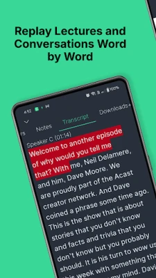 Record and transcribe classes and lectures with clear quality, even when the teacher is not right in front of you. Listen and follow along to these recordings as many times as you want to help you study for that next exam. Speed up or slow down playback to listen at a comfortable pace.