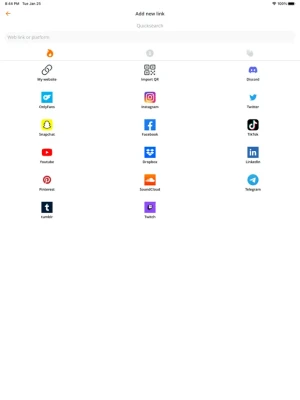 Link your Instagram, Twitter, Snapchat, Youtube or any other website!Create your AllMyLinks profile in seconds, 100% free!You are in complete control, there are NEVER any ads on your profile!Scan a QR code to add a link right from the app!Offline mode for times when there's no connection.
