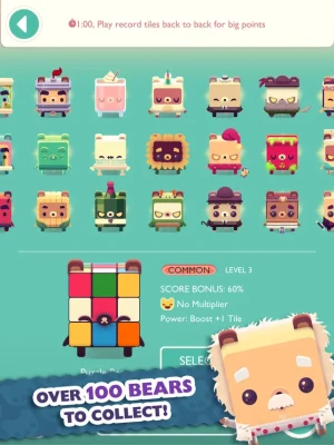 When you solve the puzzles, you'll earn new bears for your permanent collection. These bears can team up to help you in future games! They increase the points you earn, extend your timer, modify the game board, and more.