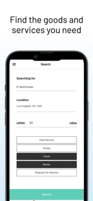 Choose your service type (Pay, barter or favor) and get connected!