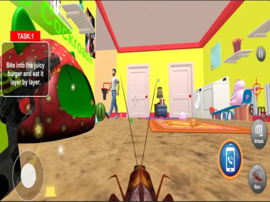 The core gameplay is simple but full of fun: the cockroach teases and irritates the man in the house. As the irritation builds, the man tries to chase and hit the cockroach in a chaotic, fast-paced sequence of events!