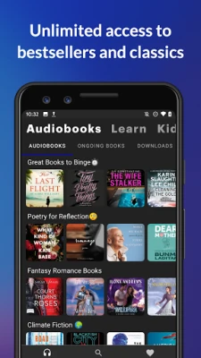 ● Expansive Library: Explore a diverse collection of audio books and podcasts across various genres. From thrilling mysteries to insightful self-help guides, there's a story for every mood.