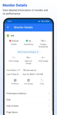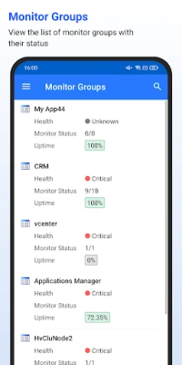 The Applications Manager mobile app provides real-time alerts on your phone for business-critical incidents that impact your monitored application environment.