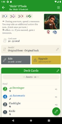 • Edit and upgrade your investigator's decks, either offline or by linking your ArkhamDB account.