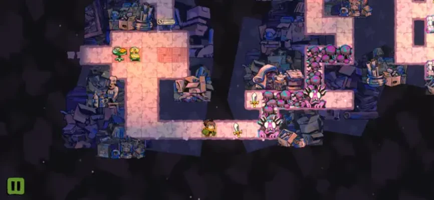• There's no XP or inventory to manage in this breezy puzzle RPG. All game objects exist on the grid, and you maneuver them into place as you move through.