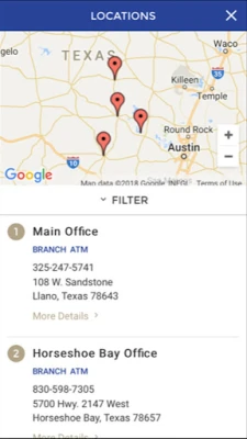 Locations: - Find nearby branches and ATMs using your phone's built-in GPS. You can also search by zip code or address.