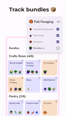 • Track Community Center bundles: Keep track of the items needed to complete each bundle.