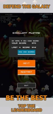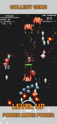 Level Up System: Collect gems and power-ups to upgrade your ship and survive longer.