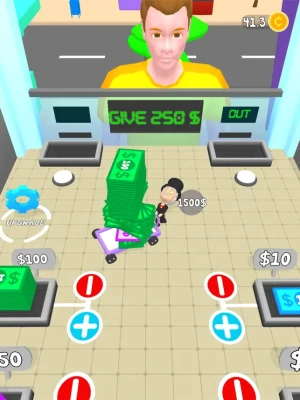 Are you ready to work in atm? If you're confident in your math, let's get started! Customers will come, give them the money they want without making them wait! Exchange the moneys, place them in their slots.