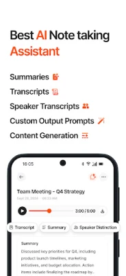 - Instant AI transcription & smart summaries
