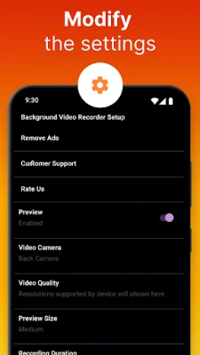 Background Video Recorder offers easy-to-use customizable settings to enhance your recording experience further. You can set specific time and date parameters for this secret camera app to automatically start recording, allowing you to capture videos at pre-determined moments effortlessly. Additionally, you can choose between your device's front and back filming modes, ensuring optimal versatility.