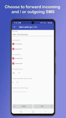 If the filter matches with the received/sent SMS / MMS, the application will synchronize the SMS / MMS with the second device.
