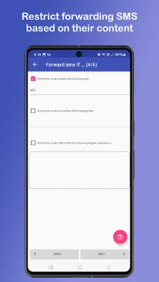4) Filter creation to transfer SMS / MMS depending on the SMS / MMS sender and/or on the SMS / MMS content.