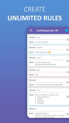 Automatically respond to custom received Viber messages with this bot. You have a lot of settings to customize each auto reply for your needs. Download now for free!