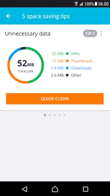 AVG Cleaner Lite runs automatic cleaning check-ups and lets you know when it's ready to go. This feature runs regular cleaning check-ups of your history, files and photos and lets you know what else you can safely remove. Just set it up to run at a frequency you prefer, depending on your usage level and available space.