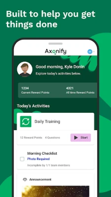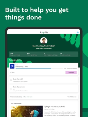 The Axonify mobile app is built for the frontline. Complete personalized daily training, find crucial information, share insights and ideas, track your to-do list and much more. Plus, play games and challenge co-workers to earn points and redeem for prizes and rewards.
