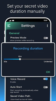 Spy camera is an easy-to-use app with plenty of customizable settings to fit your needs. You can start recording hidden videos by using a video recorder background for Android with just one click and choose from different recording modes. You can also record videos during phone calls and schedule recordings at specific times and dates in a video recorder with an audio app.