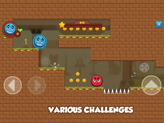 Red and Blue Puzzle: Twin Color Ball is an addictive puzzle game where you have to synchronize two characters. Control both ball at the same time and use the buttons to move, push boxes and collect coins to reach the exit in the pyramid.