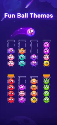 - Many interesting color ball sort background, balls (such as marbles, emoji balls, yarn ball, etc.), and ball sorter tubes to choose from.
