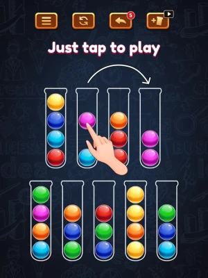 How to play: - Tap any tube to move the ball on top into another tube. - Only move one ball on top of each tube if they have same color or empty tube. - Fill each tube with same color balls to complete level. - Try not to get stuck! Otherwise, you can restart the level at any time.
