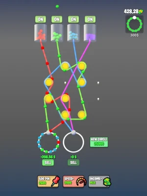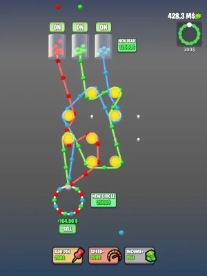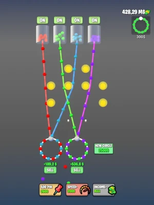 Try to string pearls on circles. If you can make your circle match the target, you can earn more money. With the money you earn, you can open new beads or circles, or buy some upgrades.