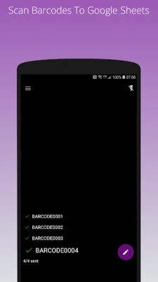 Scan and send barcodes and QR Code to Google Sheets / Spreadsheet