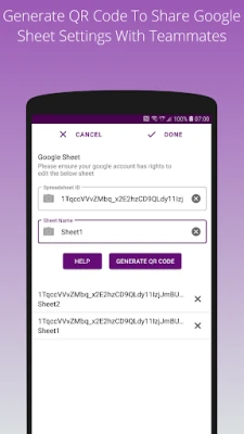 2. Enter the sheet details in the app