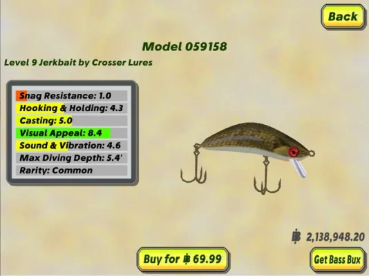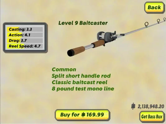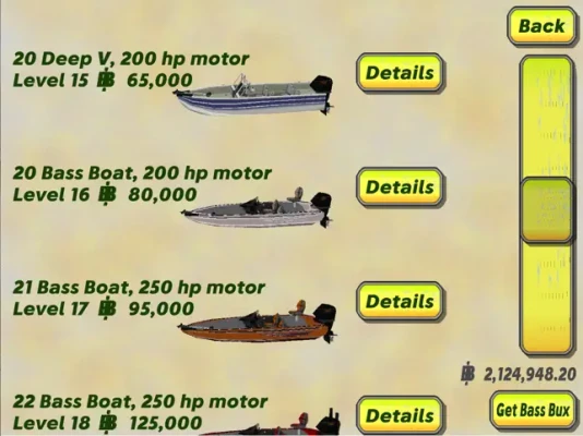In-app purchases are available to let you pick up some extra Bass Bux, the currency in the game, for shopping for equipment upgrades. You can’t buy your way to the top, though. The only way to advance in levels is with the points you earn competing in tournaments.