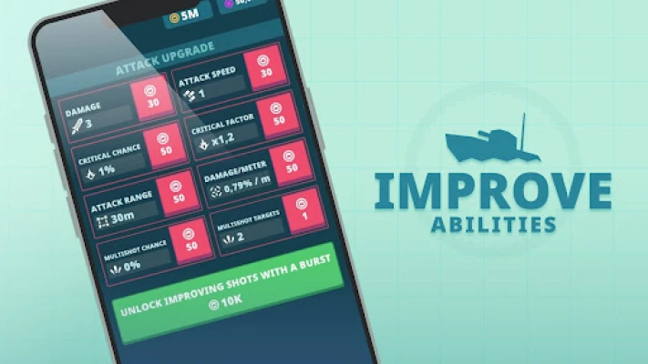 ✔️ Raise the score and invest resources to fortify permanently in the shipyard