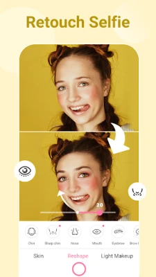 Beauty Camera - Selfie Camera is also a makeup camera, photo collage maker app and music video editor to offer various free features and editing tools: daily updated animated effects, smooth skin, slim face, remove acne or blemish, retouch eye shape, plus teeth whitening, reshape body, face tune your selfies in seconds.